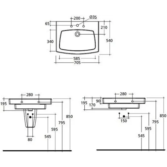 • для установки соло или с полуколонной T409801 или для встраивания в мебель (для установки IN SET)
