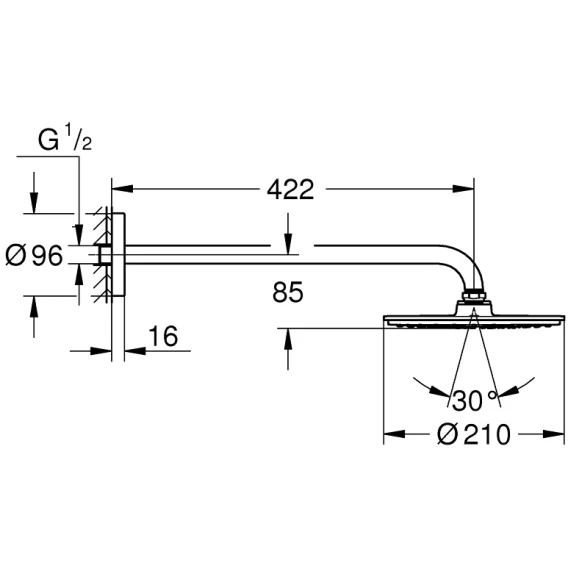 • Rainshower Душевой кронштейн 422 мм, хромированная розетка (26 146)