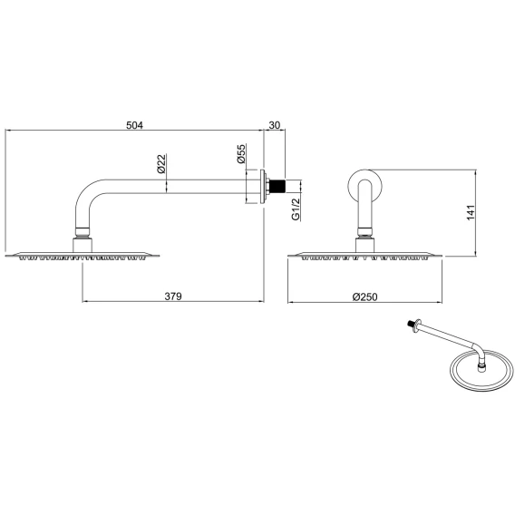 Диаметр верхнего душа 25 см