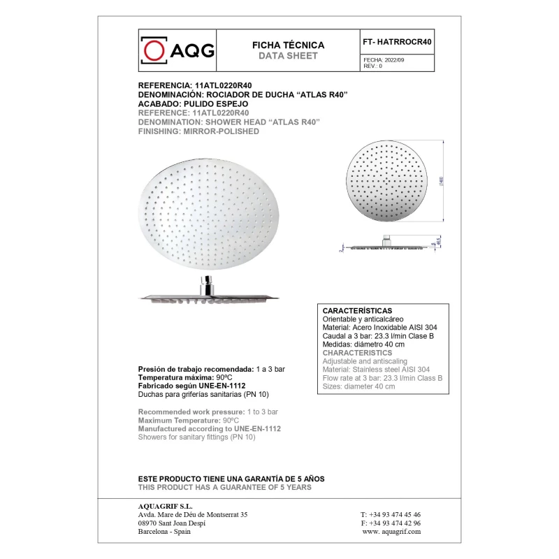 Верхний душ AQG Atlas R 11ATL0220R40 400 мм, хром
