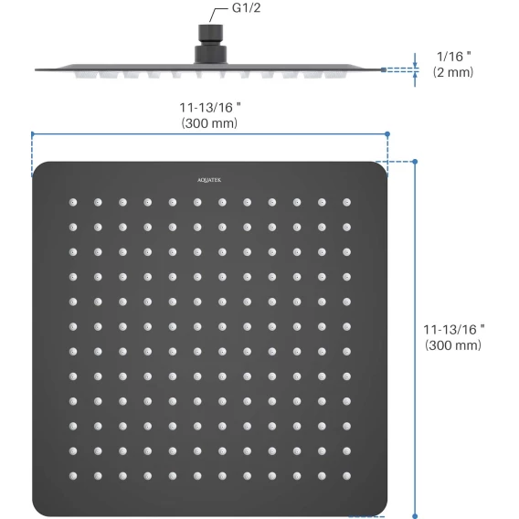 Верхний душ Aquatek AQ2074MB 300 мм, черный матовый