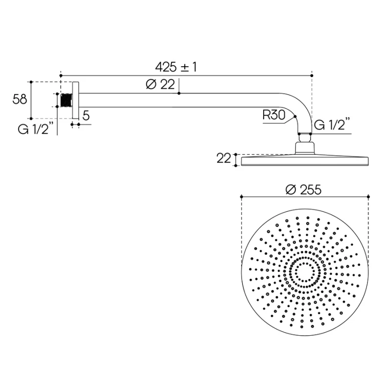 Верхний душ Aqueduto Chuva AQDSCHU0900 255 мм, с кронштейном, хром