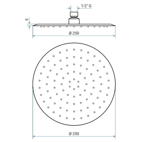 Диаметр верхнего душа 25 см