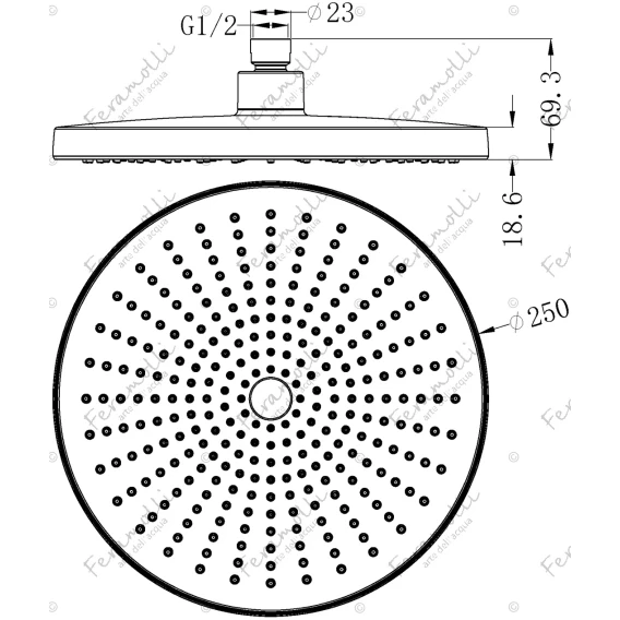 Диаметр верхнего душа 25 см