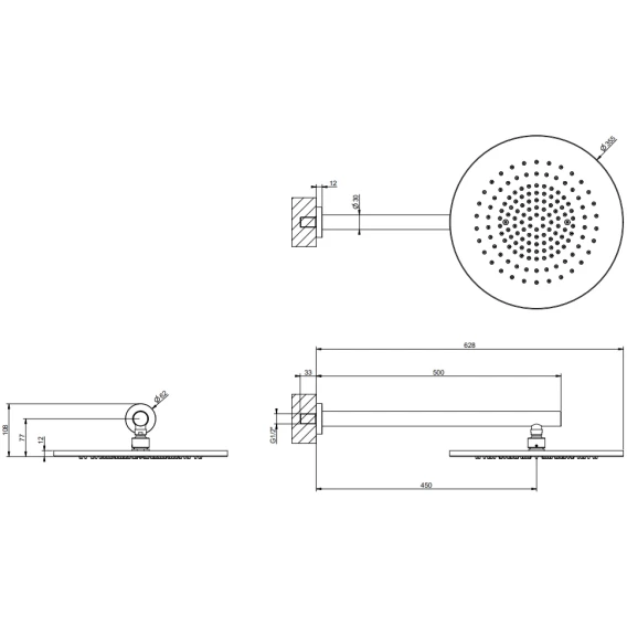 Верхний душ Gessi Gessi316 54148#707 355 мм, с кронштейном, черный хром матовый