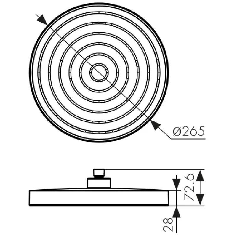 Верхний душ Kaiser SH-311 265 мм, вороненая сталь