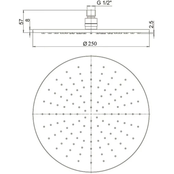 Диаметр верхнего душа 25 см