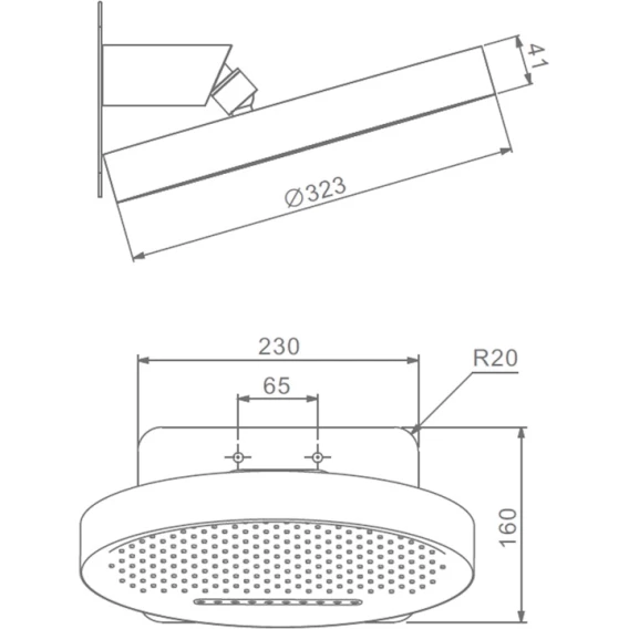 Диаметр верхнего душа 32.3 см