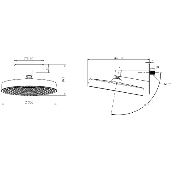 Верхний душ Wonzon & Woghand WW-HS099-BG 300 мм, с кронштейном, золотой матовый