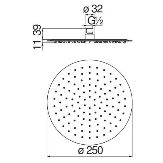Диаметр верхнего душа 25 см