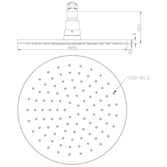 Верхний душ 250 мм Omnires Slimline Air WGA125CR