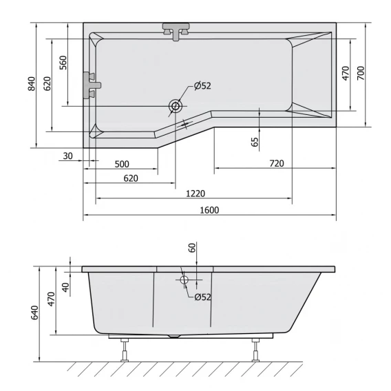 Акриловая ванна 160x84 см L Alpen Versys 14611