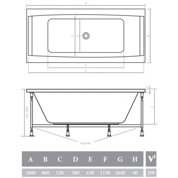 Акриловая ванна 180x80 см Alpen Vesta AVP0036