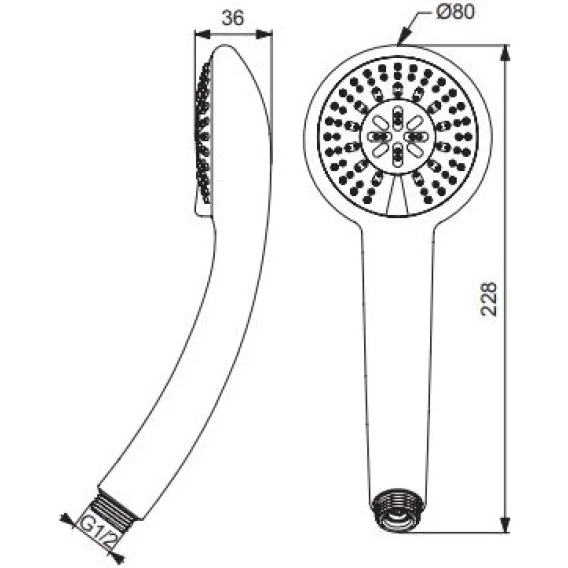 • Душевая лейка Ø80 мм