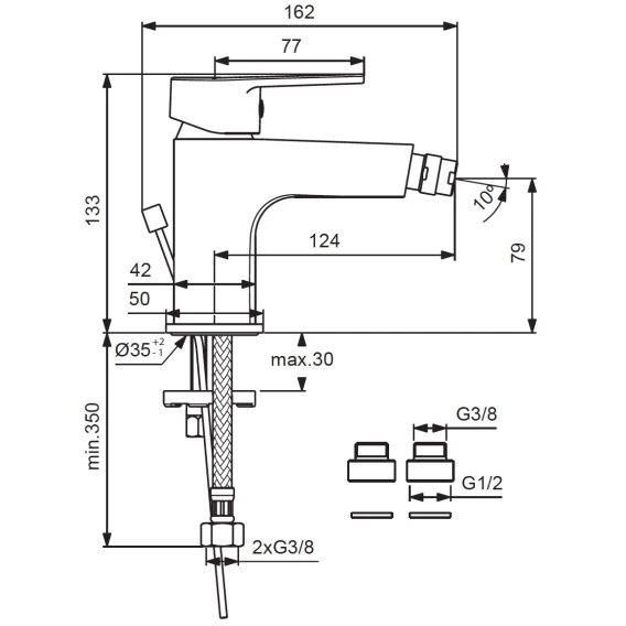 • Съемные гибкие шланги 400 мм