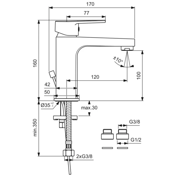 • Длина излива, мм: 120