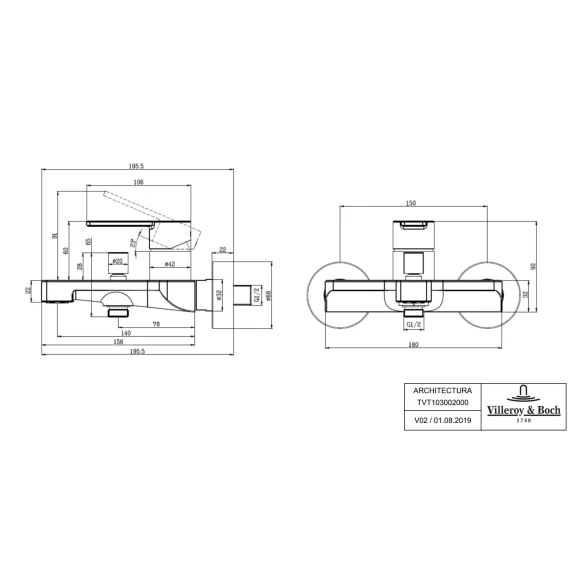 Смеситель для ванны Villeroy & Boch Architectura TVT10300200061