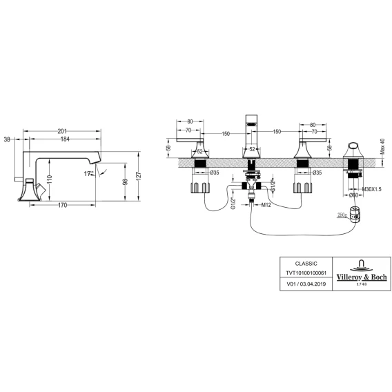 Смеситель на борт ванны Villeroy & Boch Classic TVT10100100061