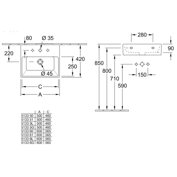 Раковина 60x42 см Villeroy & Boch Memento 51336LR1