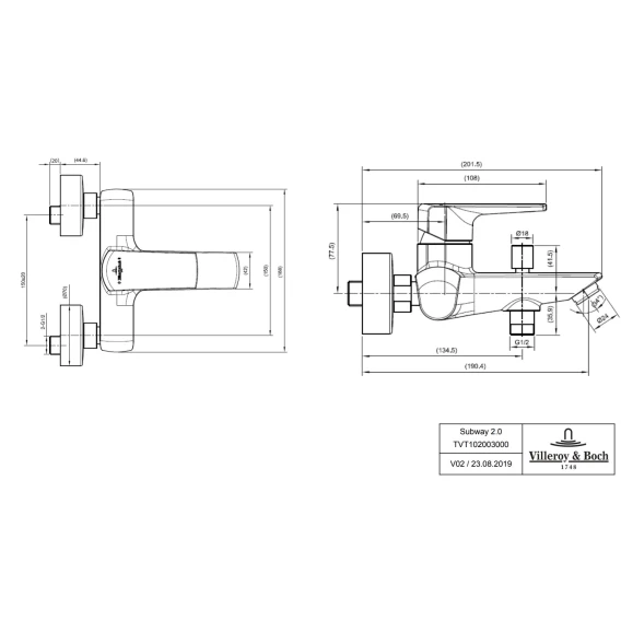 Смеситель для ванны Villeroy & Boch Subway 2.0 TVT10200300061
