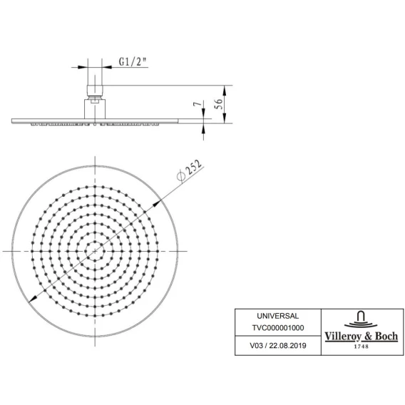 Верхний душ 252 мм Villeroy & Boch Universal TVC00000100061