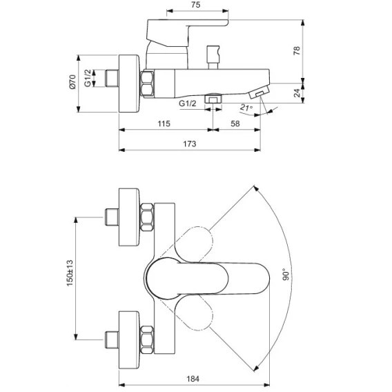 Смеситель для ванны Ideal Standard Vito B0412AA