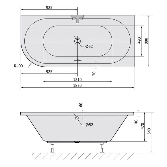 Акриловая ванна 185x80 см R Alpen Viva 72129