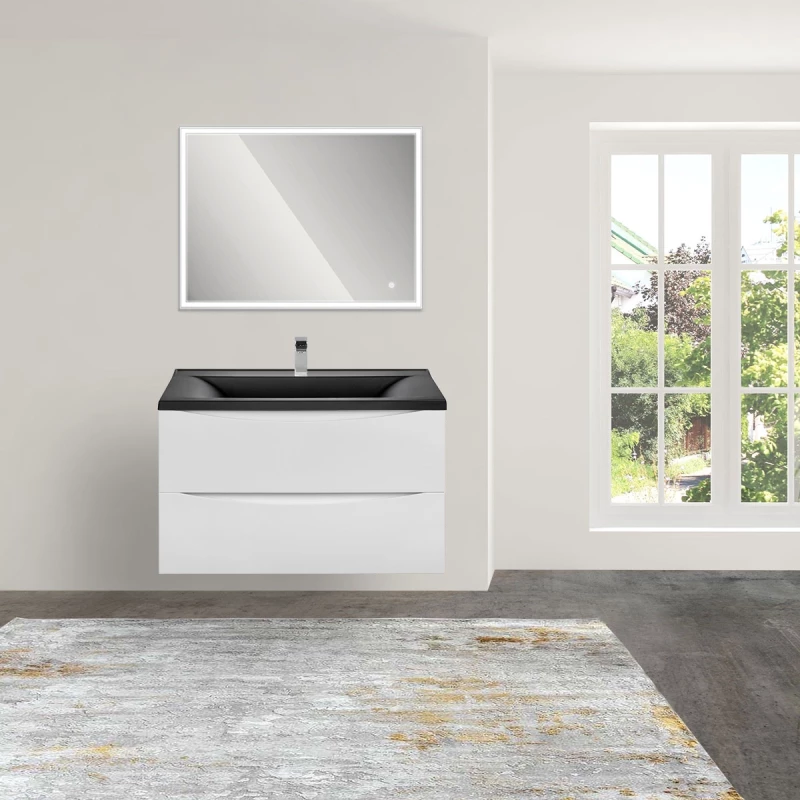 Комплект мебели белый глянец 80 см Vincea Mia VMC-2MA800GW + VCB-3M800B + VLM-3VN800