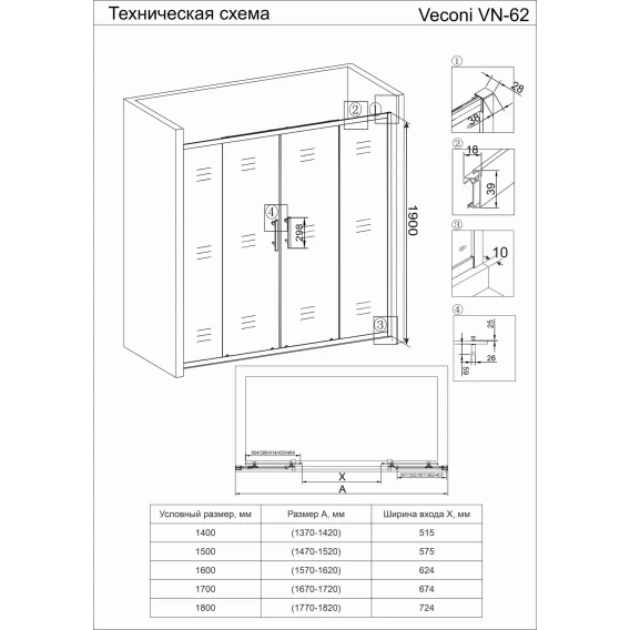 Душевая дверь 160 см Veconi Vianno VN49-160-01-19C1 прозрачное