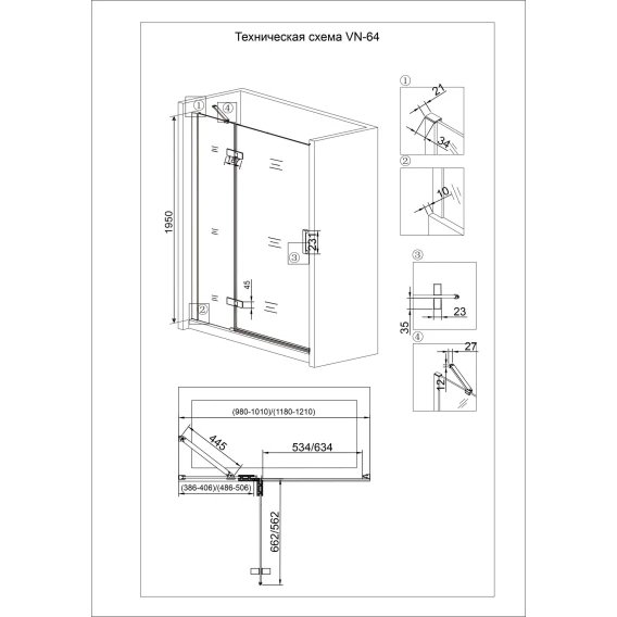 Душевая дверь 100 см Veconi Vianno VN64-100-01-19C3 прозрачное