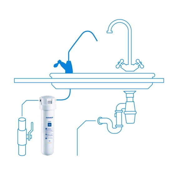 • Ультра-компактный корпус фильтра легко помещается под мойкой, а на поверхности крепится отдельный кран для чистой воды. Вкусная и свежая питьевая вода всегда у Вас под рукой.