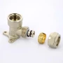 Монтаж обжимных фитингов следует производить в соответствии с требованиями СП 40-102-2000;СП 41-102-98; СП 40-103-98 и СНиП 3.05.01-85.При монтаже системы следует придерживаться следующего порядка:• отрезать металлопластиковую трубу нужной длины, строго перпендикулярно оси трубы;• подготовить трубу к монтажу фитинга (откалибровать трубу и снять внутреннюю фаску);• одеть на трубу гайку и обжимное кольцо (цангу);• вставить до упора штуцер фитинга в трубу, не повредив уплотнительных колец;• пододвинуть к корпусу фитинга обжимное кольцо;• накрутить от руки гайку на фитинг;• с помощью двух ключей соответствующего размера затянуть гайку на фитинге.Для качественного монтажа следует соблюдать следующие усилие затяжки ключами:• для фитингов d16 – 11/4 оборота гайки после затяжки от руки;• для фитингов d20-26 – 1 оборот гайки после затяжки от руки.