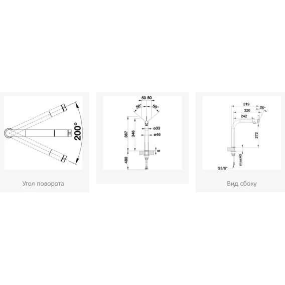 • Высокий излив позволяет с легкостью наполнять высокие кастрюли и вазы