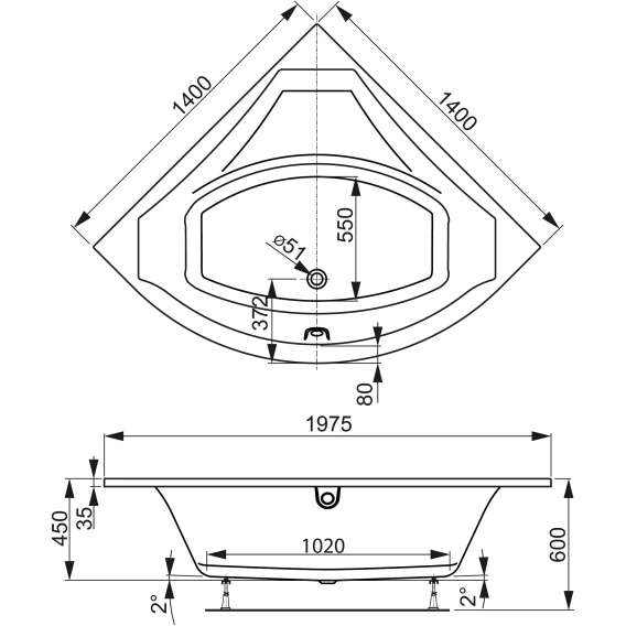 Акриловая ванна 140x90 см Riho Lyra L B020001005