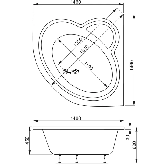 Акриловая ванна 146x146 см Vagnerplast Catalina VPBA146CTL3X-04
