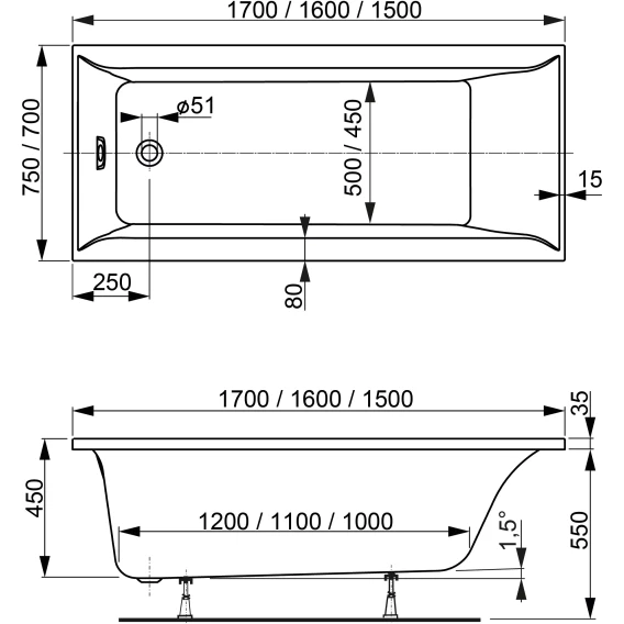 Каркас для ванны 170x100 1Marka Julianna 03дж1710