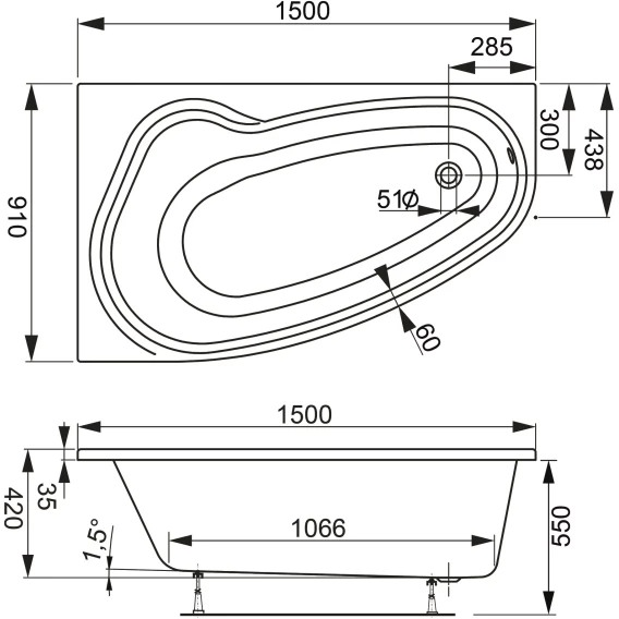 Акриловая ванна 150x91 см L Vagnerplast Avona VPBA159AVO3LX-04