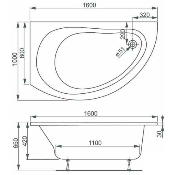 Акриловая ванна 160x100 см R Vagnerplast Corona VPBA168CRN3PX-04