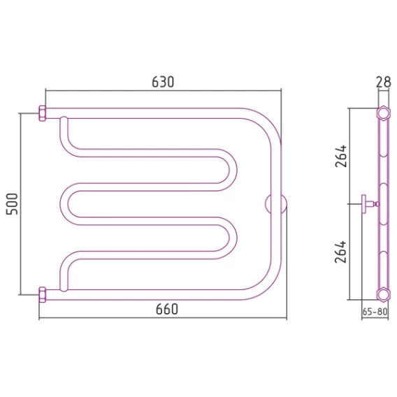 Полотенцесушитель водяной 500x650 Сунержа Лира+ 00-4011-5065
