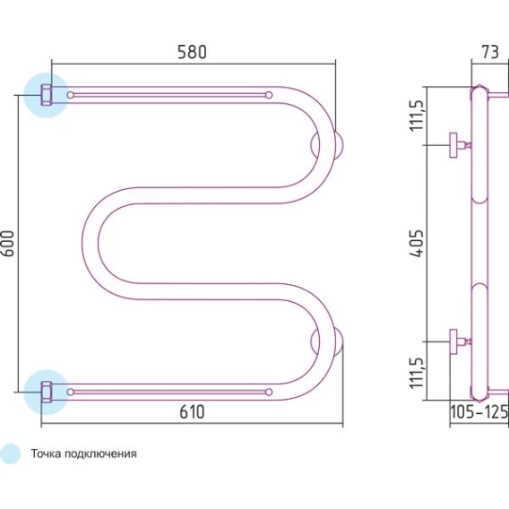Полотенцесушитель водяной 600x600 белый матовый Сунержа М-образный +2 полки 30-4008-6060