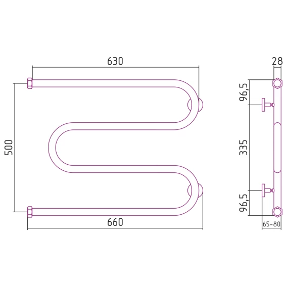 Полотенцесушитель водяной 500x650 белый глянец Сунержа М-образный 12-0007-5065