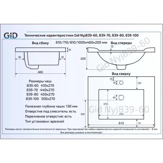 Раковина 61x46 см GID Simple N NYJ807-60