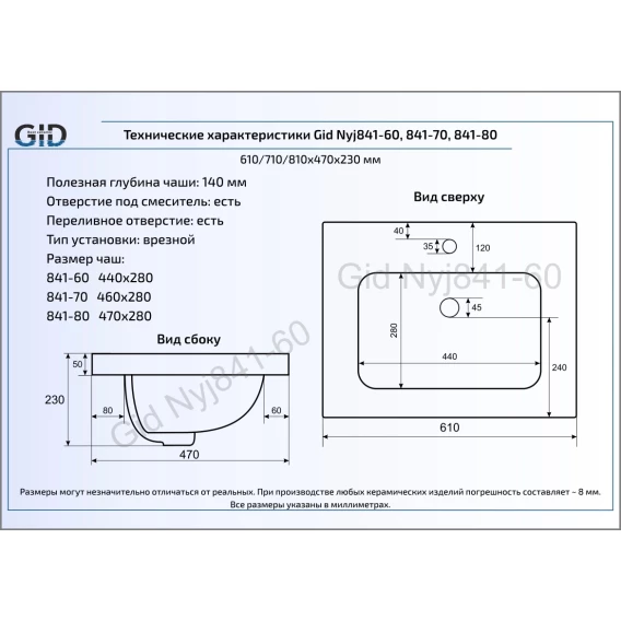 Раковина 120,5x46 см GID Simple N NYJ809-120
