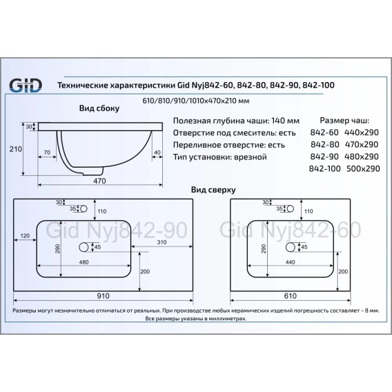Раковина 120,5x46 см GID Simple N NYJ809-120
