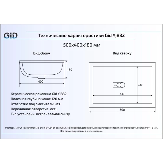 Раковина 50x40 см GID Simple N YJ832