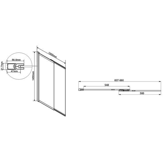 • Конструкция изделия позволяет как вращение шторки вокруг оси так и раздвигание/вдвигание внутрь секции душевой шторки