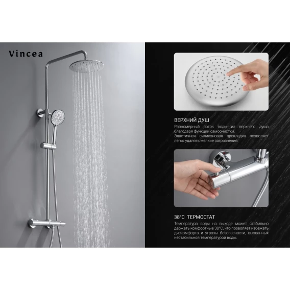 Душевая система 250 мм Vincea Esse VSFS-1E0TMB