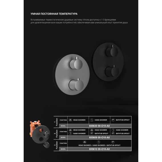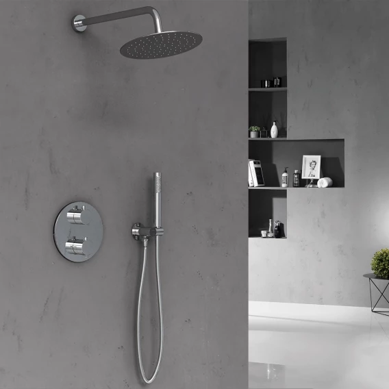Душевой шланг, Душевая лейка, Подключение для душевого шланга с держателем, Верхний душ, Скрытая монтажная часть, Кронштейн, Термостат