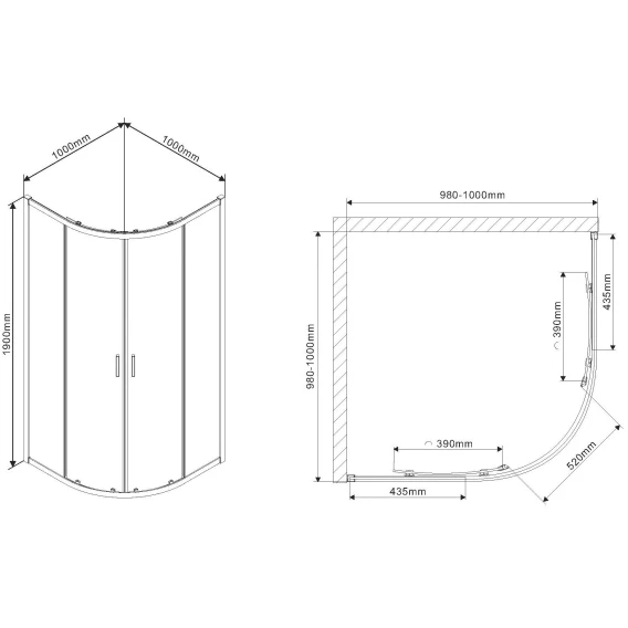 • Регулировочные размеры: 980-1000 x 980-1000