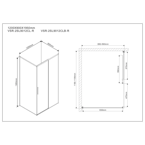 Душевой уголок 119x89 см Vincea Slim VSR-2SL9012CL-R прозрачное